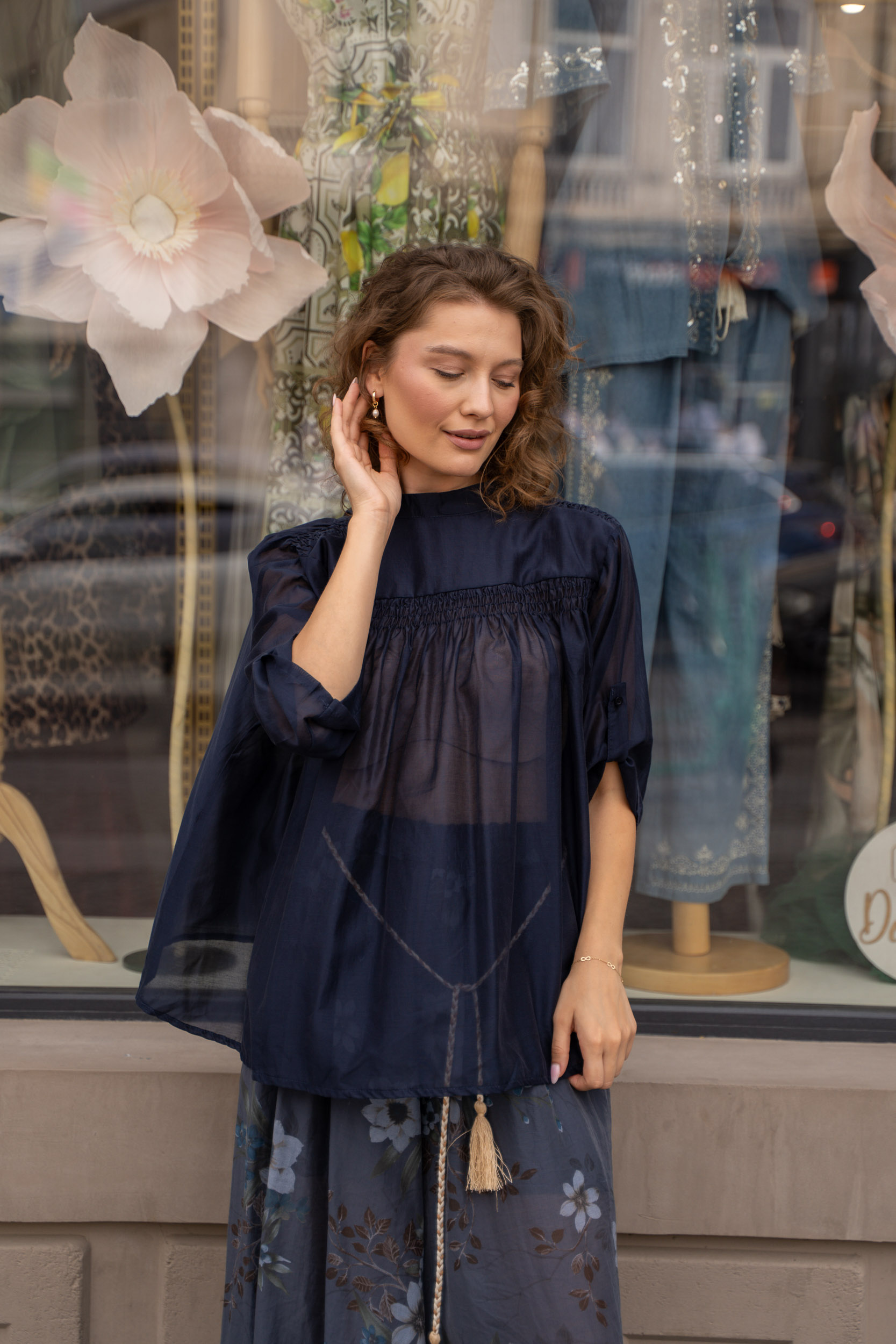 Bluza albastru marin emană eleganță discretă și rafinament, fiind alegerea ideală pentru un look versatil de zi cu zi. Cu o croială lejeră și un material plăcut la purtare, se potrivește perfect atât în combinații casual, cât și în ținute mai smart, adăugând profunzime și stil garderobei tale.