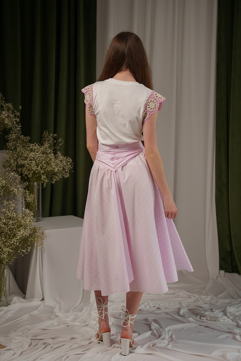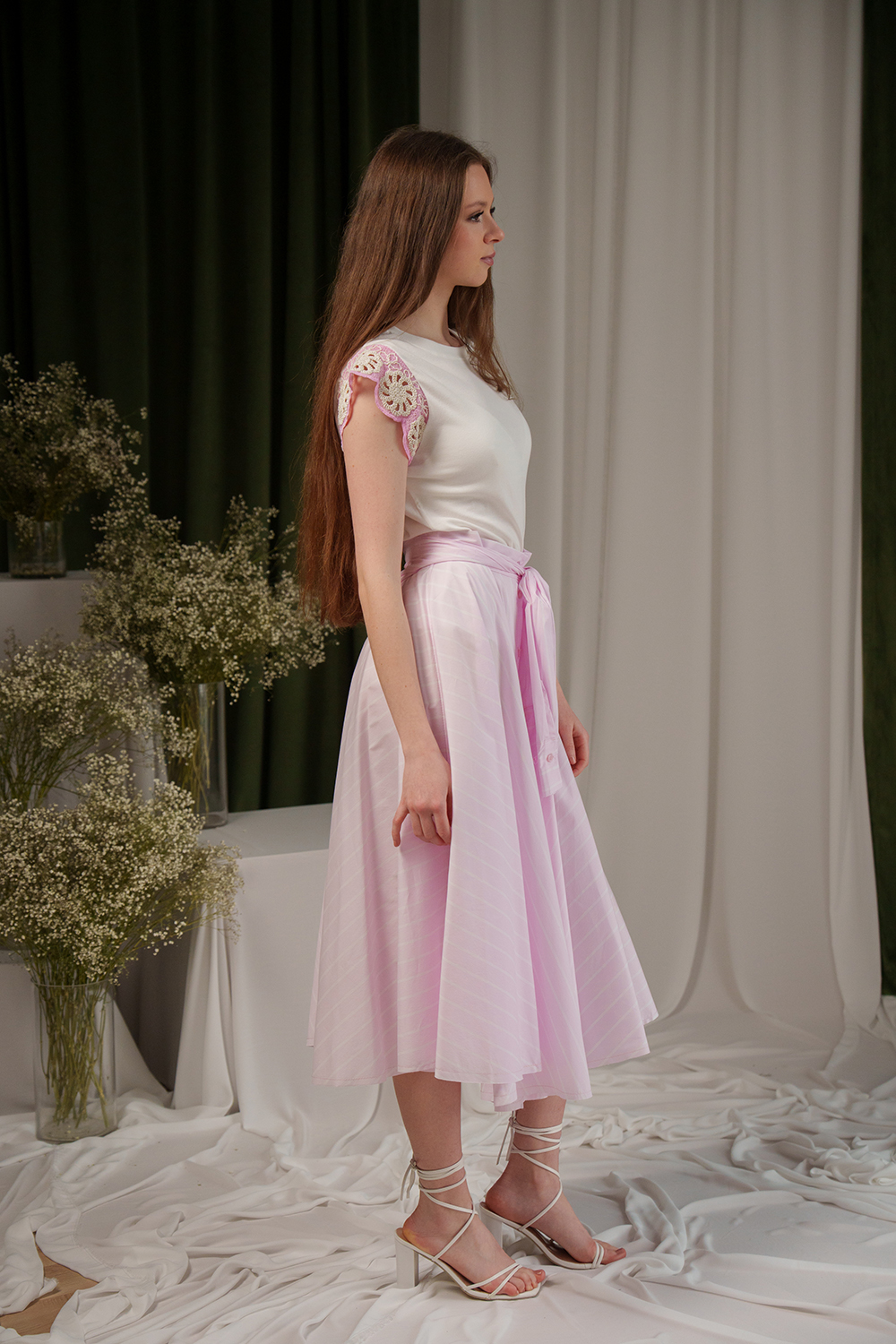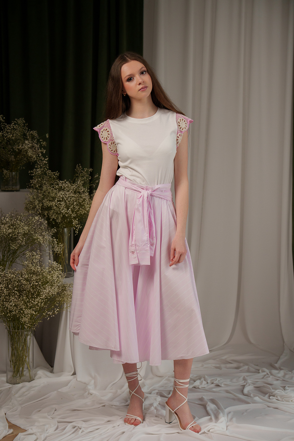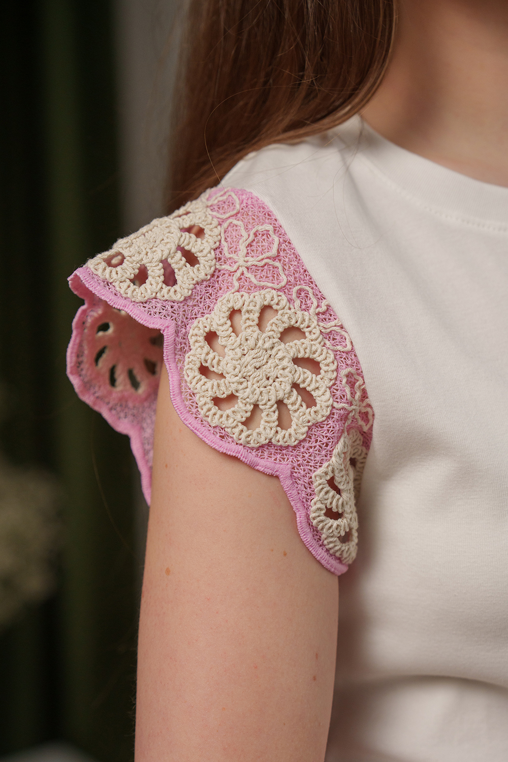 Tricou cu detalii decorative în nuanță roz și bej la nivelul umerilor, care adaugă un plus de stil. Confortabil și ușor de purtat, se integrează ușor în ținute de zi cu zi, putând fi combinat cu jeanși, pantaloni sau fuste.