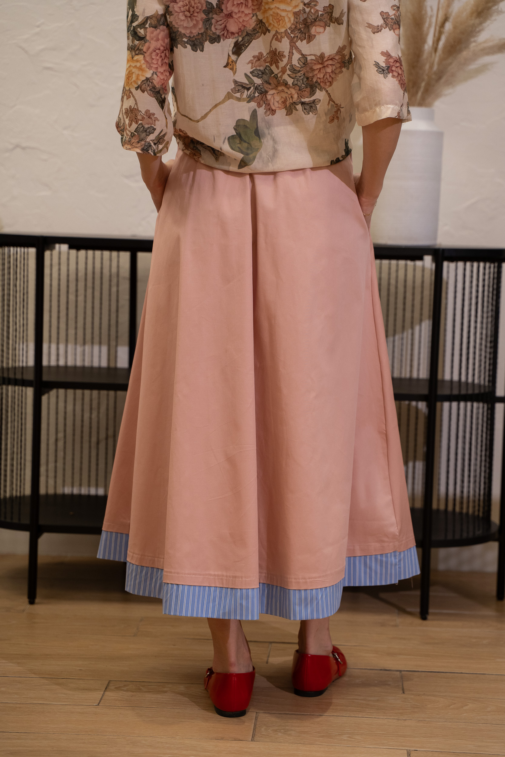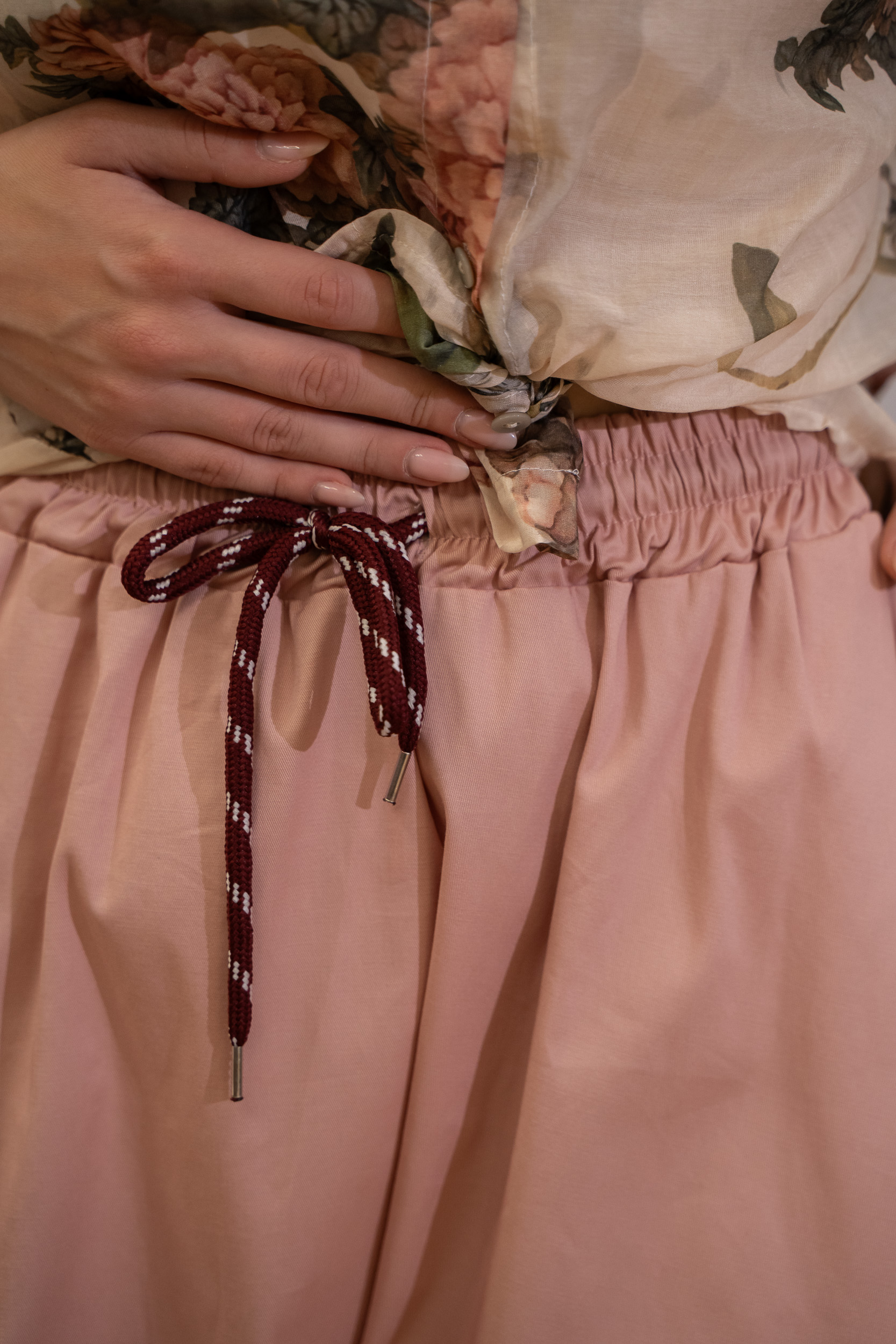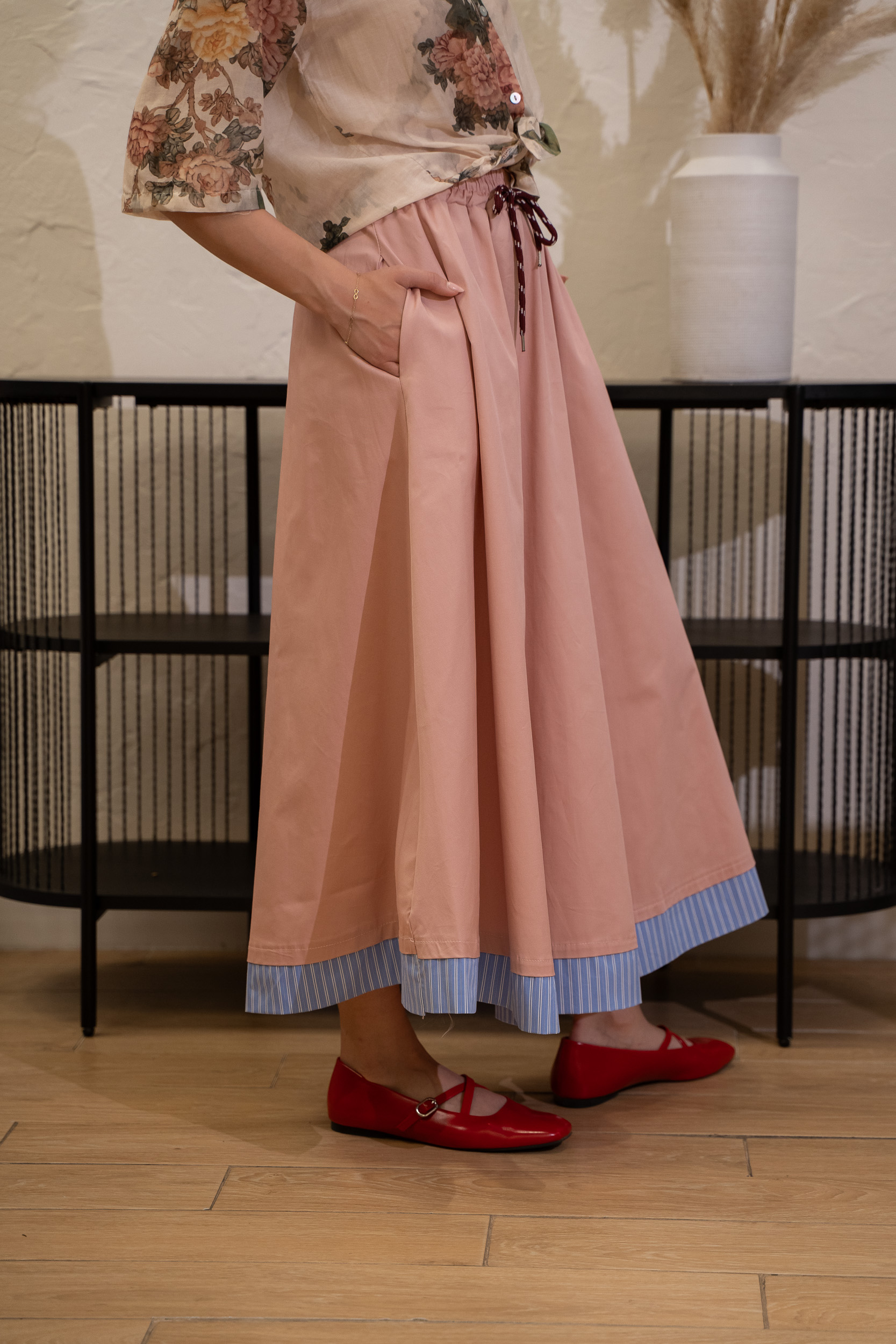 Fii gata să întorci toate privirile cu această fustă playful, în nuanțe dulci de roz și accente contrastante albastre. Croiala lejeră și șiretul ajustabil îți dau libertatea să o porți cum vrei tu – fie casual cu un tricou alb, fie glam cu un top satinat. Detaliul tivului albastru adaugă un twist fresh, perfect pentru zilele în care vrei să ieși din tipare.