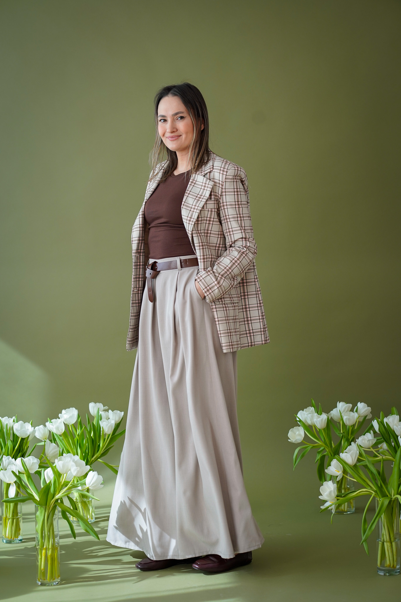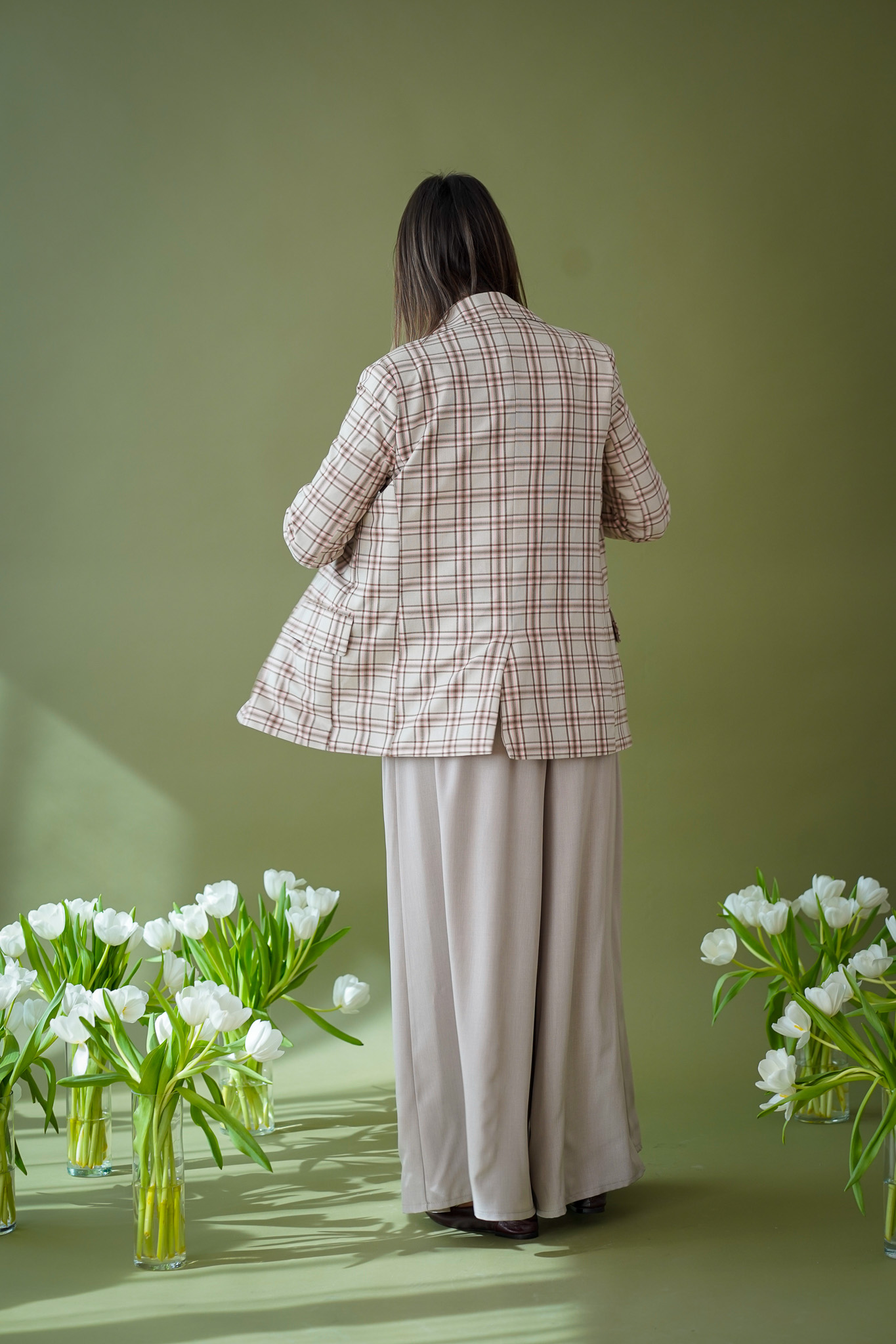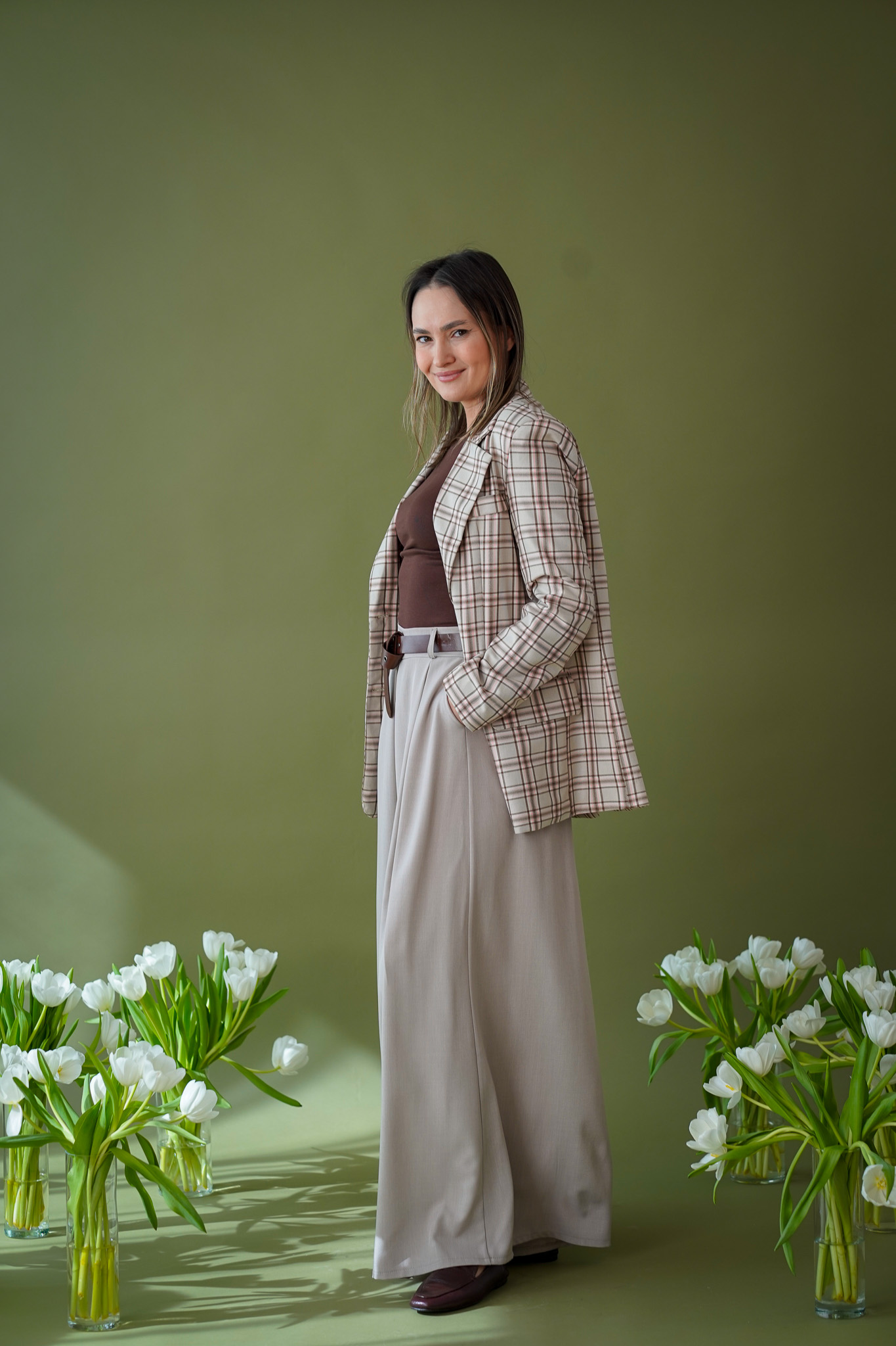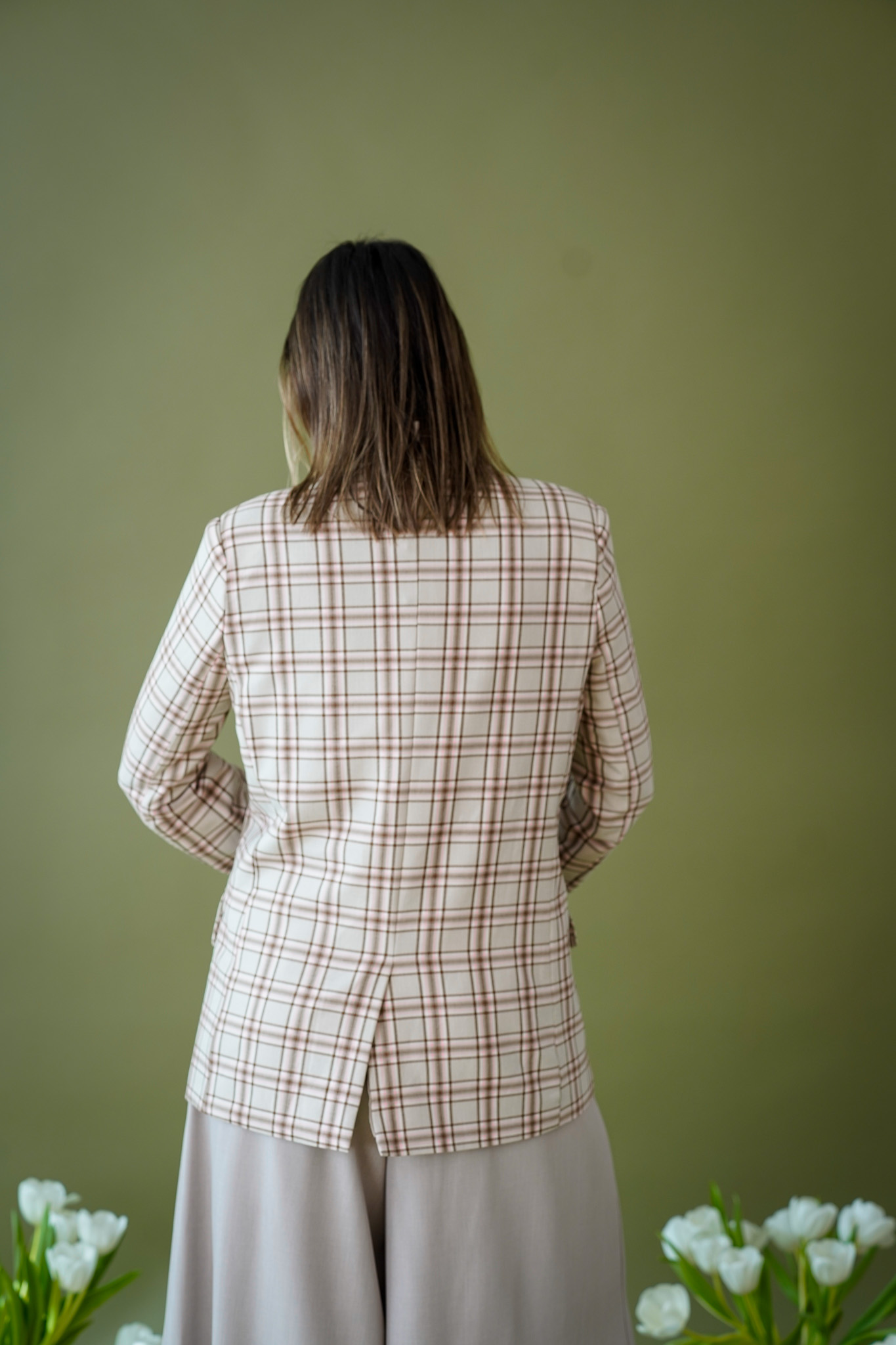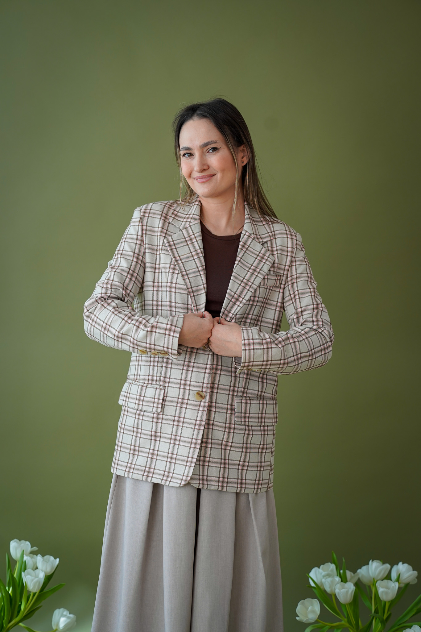 Sacou cu model în carouri și croială clasică, care oferă un aspect elegant și îngrijit. Designul bine structurat evidențiază silueta, iar stilul versatil permite integrarea ușoară atât în ținute casual, cât și în outfituri mai elegante.